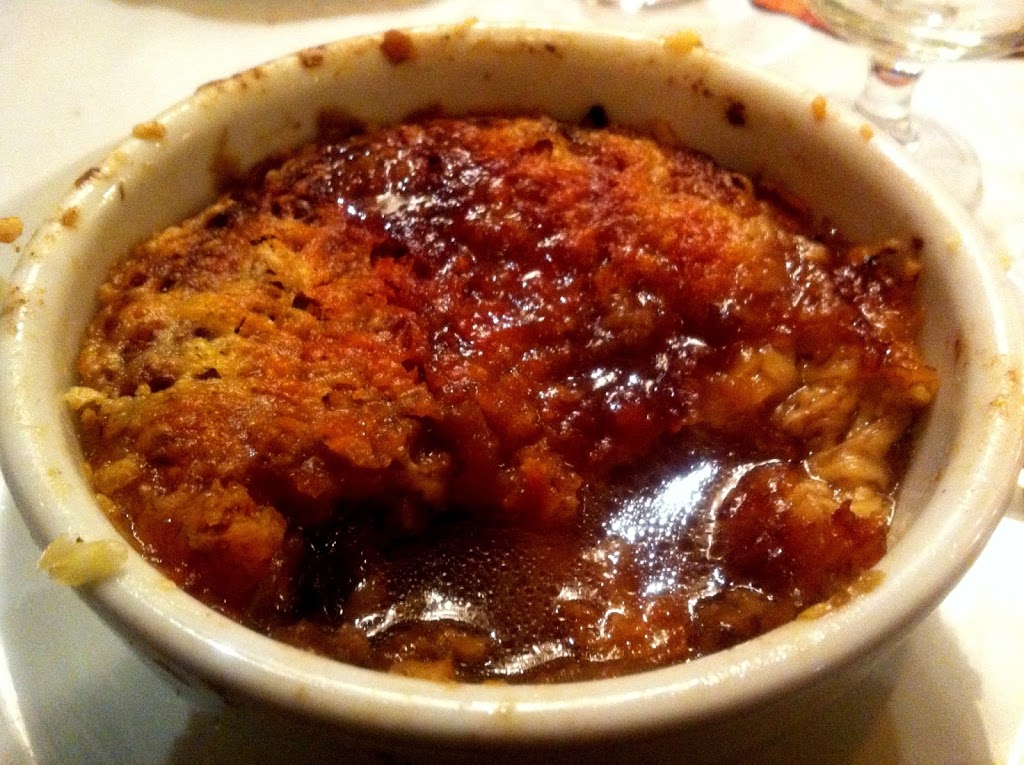 French onion soup with the French!  Nick, a coworker, has a French girlfriend who organized a surprise dinner to welcome him back after a two month trip home to California.  Nick said one of the first things he wanted was French onion soup, and Pied de Cochon is famous for theirs.
