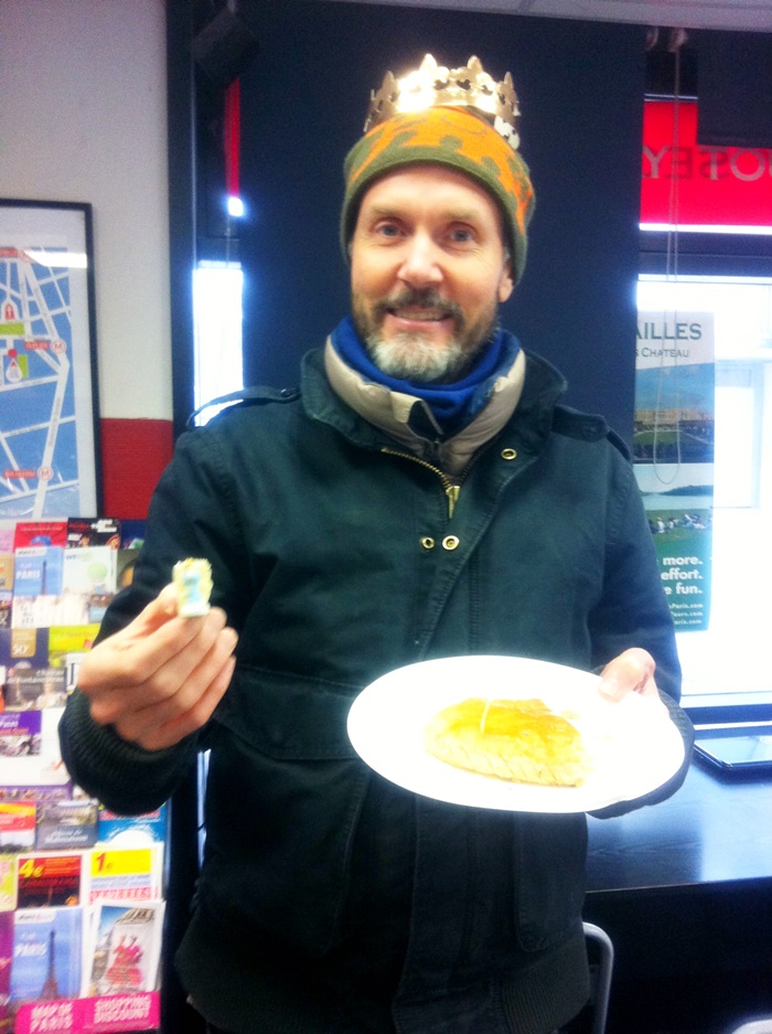 On Friday, we celebrated one of my favorite French traditions, the Galette de Rois, which is where the Gulf Coast area gets the Mardi Gras tradition of King’s Cake.  It always happens in January because this is when the Epiphany is celebrated – When the three kings brought gifts after the birth of Jesus.  You will see these delicious flaky pastries in all the bakeries this time of year.  It always comes with a paper crown, and there’s a tiny figurine, “la feve”, hidden somewhere within the dense bottom layer.