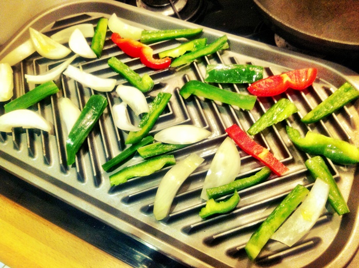 Sunday night, I bargained with my friend Rick to come over and put together IKEA furniture in exchange for a fajita dinner.  A grill pan is the only way to go in a BBQ-less city. Grilled peppers, onions, chicken fajitas, Texas salsa, and guac made for a great taste of home.