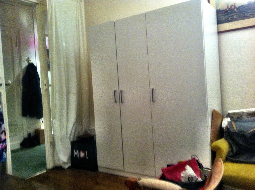 Somewhere to put clothes!  The small closet in our entry way is barely big enough to contain winter coats let alone my summer & winter clothes, many of which are hidden under my bed until we see sun again. In a world where closets and couches are not a given in any apartment, the addition of a small IKEA love seat and this wardrobe to my room make for much, much happiness.