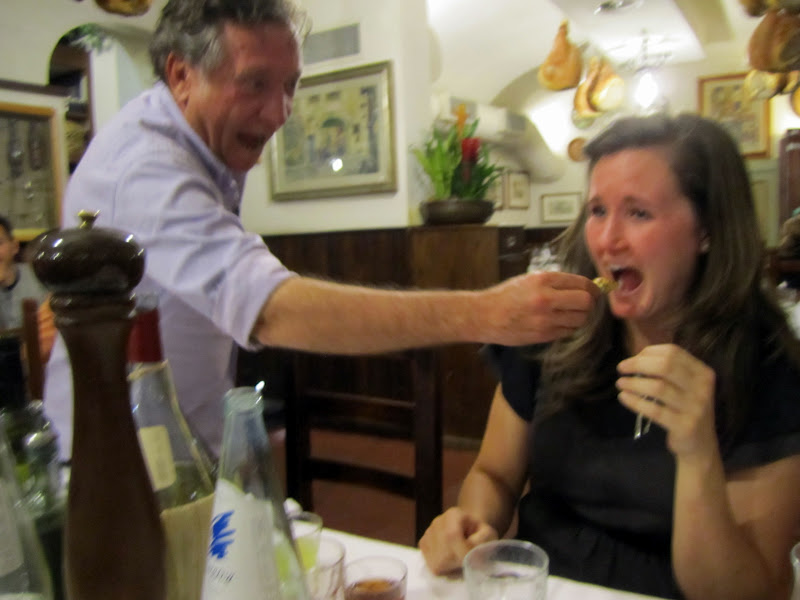 A ridiculous, hilarious meal with two Italians born in Florence. Ending with Julie being force-fed baby-style with airplane noises.
