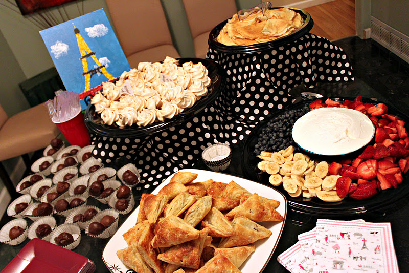 with French pastries, crepes, Eiffel Towers, and French flags