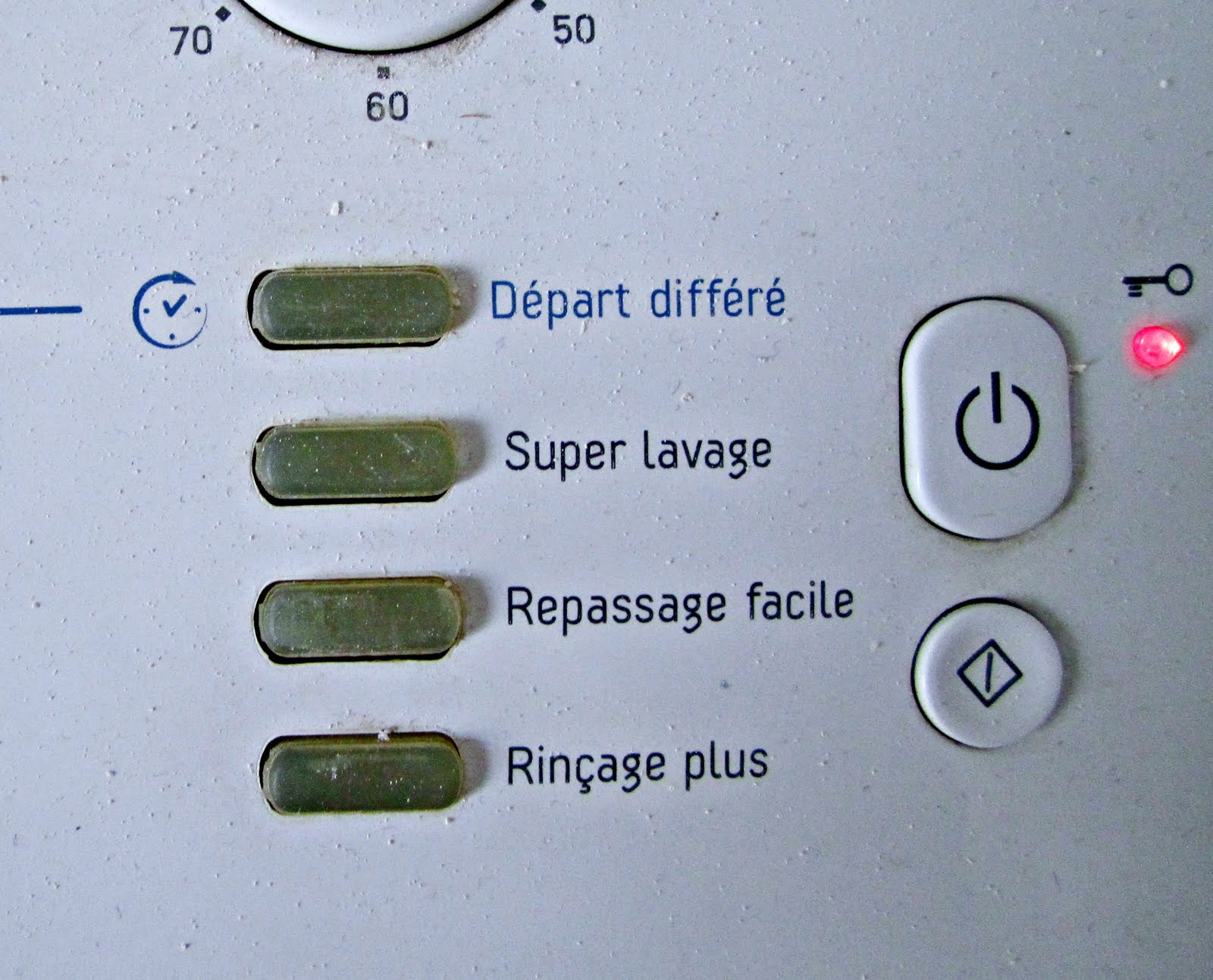 What about “normal wash”? Hm? I don’t think the SUPER washing is necessary every time (that one sounds like my laundry is preparing to launch into outer space), but I don’t even know what the other 3 do. And then those two buttons next to the key, which both look like “on” buttons to me, that I push back and forth various times until I finally hear some water start.