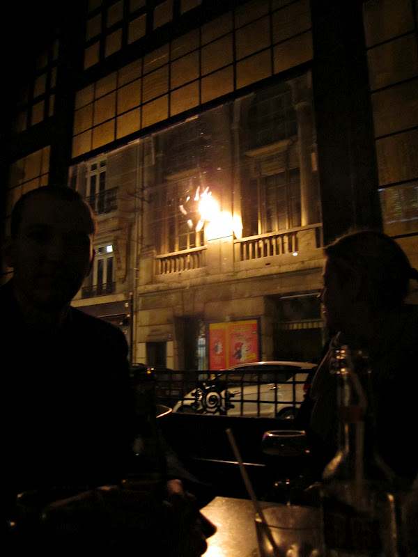 But the interior of this place is beautiful. It doesn’t even look French. I don’t even know how to describe it, you have to come visit. But check out these great huge old timey windows behind us. And the detail on the ceiling in the picture before this one. I’m sure it was THE spot for stock brokers to hang out back in the day, and it’s beautiful and unique and it smells of leather and rich mahogany.